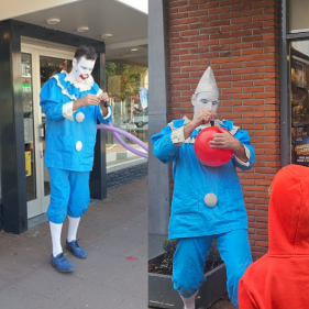 Een doldwaze energieke show gevuld met show onderdelen als dans, jongleren, spelletjes, goocheltrucjes, muziek en meer. Interactief met kinderen.