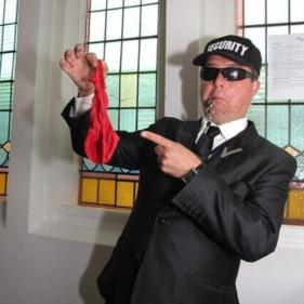 Improvisatie en goochelen in 1; Grappige trucjes als pistool uit damestas halen, slip uit jaszak, wiet uit de binnenzak halen, etc. Lachwekkende ontvangst!