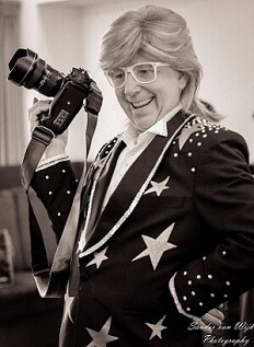 Een wervelvind, zie je ook aan zijn haren...die overal te pas en te onpas feest-en voorbijgangers op de gevoelige plaat vastlegt. Hij vindt vooral zichzelf een plaatje.