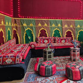 Oosterse sferen met een Waterpijp Terras, Ali Ben Shoeshine, Muntthee karretje, Buikdanseressen, Henna Tattoos en vooral veel sfeervolle decoratie.