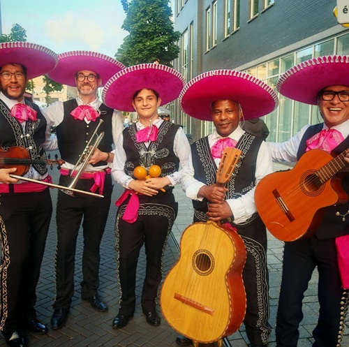 Mexicaanse muzikanten en danseressen, lekker eten van de nacho's foodtruck, dia de los muertos figuren, waarzegster tafel dame en schminkers.
